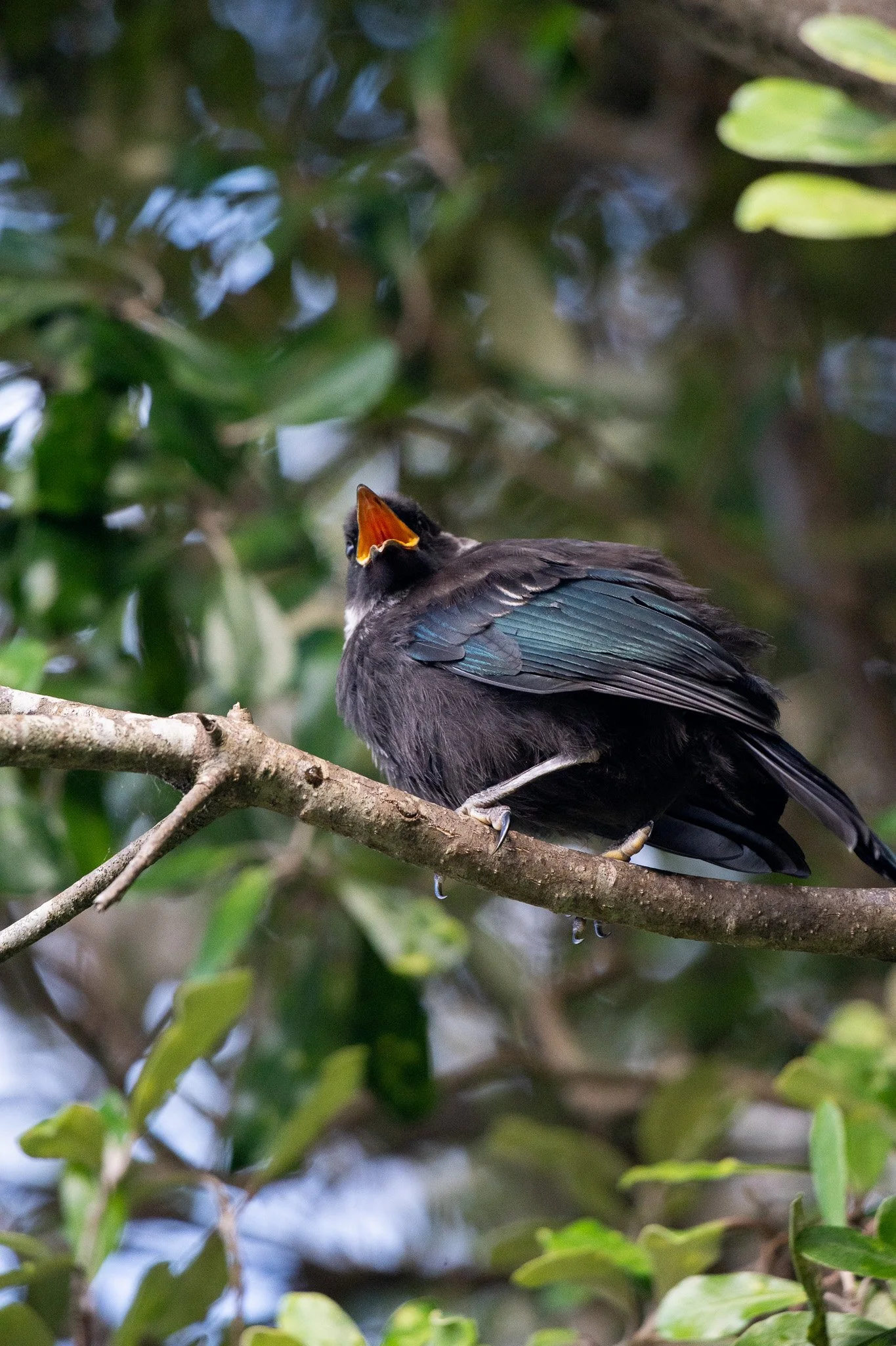 A juvenile Tūī growing up in our backyard