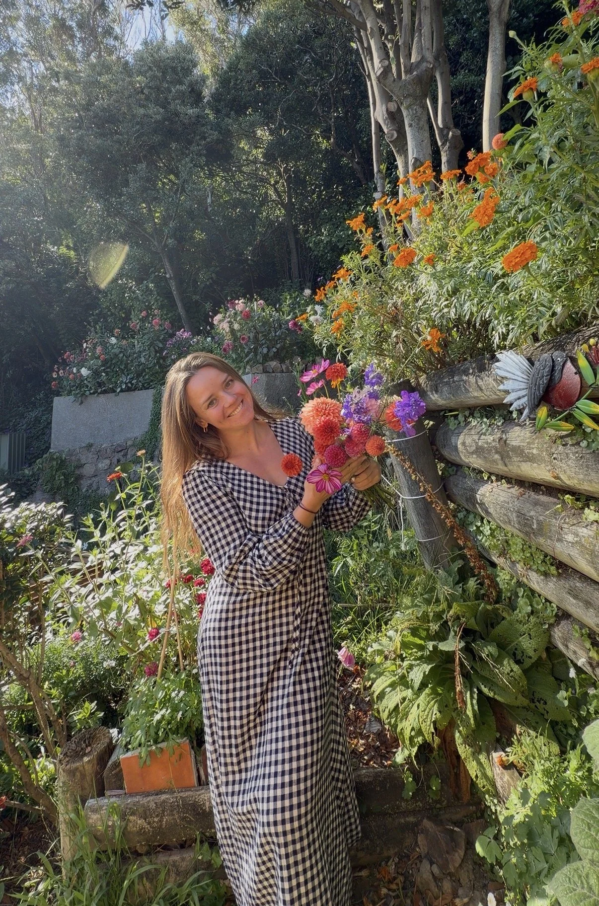 Hi, we’re Arlette and Kevin—two flower-obsessed humans who moved to Oriental Bay and accidentally fell in love with growing dahlias… and then with growing absolutely everything else. What started as a small garden project quickly turned into a micro flower farm tucked into the hillside, buzzing with birds, bees, and the beautiful wildlife that call this place home.